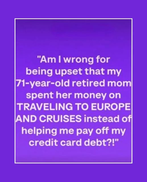 In today’s world of soaring expenses, financial conflicts within families are becoming common. A 71-year-old retired mother recently chose to spend her savings on European travel and cruises rather than paying off her adult child’s credit card debt. This decision has sparked heated debate.